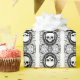 Black Victorian Cameo inspired Skulls in a repeating Damask style on a White Background.