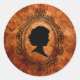 Beautiful Small Round Stickers Featuring Elegant Black Cameo Orange Grunge Damask Design - Great as Halloween Envelope Seals, Party Favour Seals, etc.