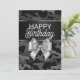 Custom birthday card with "Happy birthday" in mixed typography, silver bow, black satin ribbon, and black camouflage background.