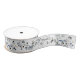 Holiday ribbon featuring a black cap chickadee painted in watercolors with branches and berries under falling snow.