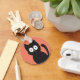 This black kitten pokes out at you from a reddish brown background. A warm autumn colour and a friendly image.
