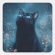 Black Cat Amidst Moonlit Wildflowers Square Sticker