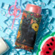 Can cooler with a cute black cat standing in warm earthy Fall colours like orange, burgundy, green and yellow done in a folk art style.
