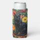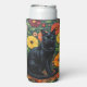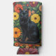 Black Cat and Colourful Folk Art Flowers Seltzer Can Cooler