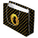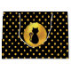 Beautiful gift bag with a black cat and golden polka dots on black background.
