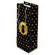 Beautiful gift wine bag with a black cat and golden polka dots on black background.