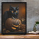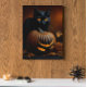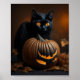 Black cat and a spooky upside down face pumpkin Halloween art.