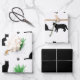 This patterned paper was created for a cat lover. The pattern features a black cat, green bush, pawprint and a mouse. There is also a solid black sheet of paper that coordinates well with the cat patterns.