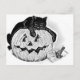 Black Cat and Spooky Pumpkin Halloween Postcard