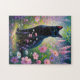 Black Cat and Spring Wildflowers Oil Painting Jigsaw Puzzle