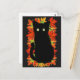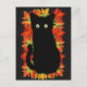 Black cat, Autumn leaves pattern, Halloween fun Postcard