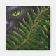 BEAUTIFUL BLACK CAT WITH GREEN EYES, BEHIND THE FERNS.