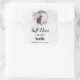 Soap, candle (or other) business product stickers with a watercolor painting of a black cat and a light purple and pink floral bouquet. Standing in front a a large full moon. Stylish and magical.