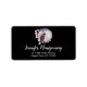 Address labels with a watercolor painting of a black cat and a light purple and pink floral bouquet. Standing in front a a large full moon. Stylish and magical.
