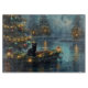 Set sail into the magic of the holiday season with this beautifully detailed illustration, showcasing a proud dog sitting in a festively decorated boat, gliding across a serene Christmas lake. The twinkling lights from nearby pine trees reflect off the water, casting a warm, festive glow that enhances the cosy ambiance. Ornaments dangle from the boat's sides, while glowing lanterns light the way, creating a scene that captures the true essence of Christmas warmth and joy. This nostalgic artwork brings a touch of holiday magic to any space, perfect for those who cherish the spirit of the season.