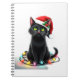 Black Cat Christmas Lights Santa Hat Funny Xmas Ca Notebook