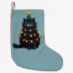 Black Cat Christmas Tree Oil Painting Altered Small Christmas Stocking