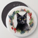 Black Cat Christmas Wreath Festive Kitten 6 Cm Round Badge