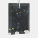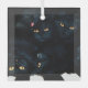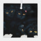 A group of fluffy black cats all together cuddling on a black and white tiles.