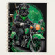 A furry friend behind the handlebars of a shiny green bike, wearing a green Saint Patrick's Day outfit that makes heads turn. The cat is dressed in a festive ensemble, complete with a green bow tie and a matching top hat that sits snugly atop their head. The outfit features intricate designs of shamrocks and leprechauns, making it clear that this cat is ready to celebrate Saint Patrick's Day in style.