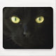 Customisable mouse pad for cat lovers with colour photography featuring a close-up portrait of a jet black cat with beautiful green eyes. You can personalise it with custom text