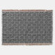 Fun throw blanket with a unique damask pattern made from a stylised drawing of a cat face with with swirly whiskers and a big smile. Shown here on a grey background but also looks great on many other colours.