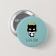 Button with a funny cat pun which says: Feline Good. Can be changed/personalised to say something else. A cute black and white angel kitty cat with a golden halo above her head, drawn in cartoon style.