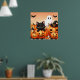 Black Cat, Ghost and Jack-O-Lanterns Halloween Poster
