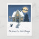 Black Cat going Home in Snowy Night with Santa Holiday Postcard