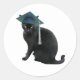 A black cat wears a teal graduation cap on these fun grad stickers.