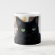black cat with gorgeous green eyes on a mug