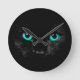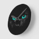 Black Cat Green Eyes Round Clock