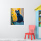 black cat, green eyes, whimsical cat, colorful bac poster