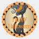 A cute black cat in witch hat with Happy Halloween text and matching black polka dots over an orange background. Great for Halloween party favours or correspondence. The cute cat graphic is original artwork©delightful-doodles.com. These stickers are available in 1 1/2 inch size and 3 inch size. Be sure to choose the size that suits your event or project.