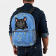 This fun novelty backpack includes a faux (printed) denim / blue jean look with a cartoon black kitty cat that appears as if it's sitting inside the front pocket! The design also includes silhouettes of paw prints and a cat / bird silhouette on one side. Use the easy template to add your name or your cat's name to the design (or simply delete the sample name "Tabitha" to order without a name). These cute backpacks make the perfect gift for any cat owner! They would also be fun for an animal groomer or vet. Find more cat colours and also find this design on other products in the store here: https://www.zazzle.com/store/laborandleisure