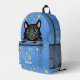 Black Cat in Faux Denim Pocket with Custom Name Printed Backpack