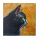 A watercolor portrait of a black cat namedTickles, in one of her rare quiet moments.