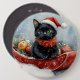 Black Cat in Sledge Let it Snow Christmas 6 Cm Round Badge