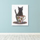 Black Cat in Teacup by FabFunky. Features a cat sitting in a beautiful floral teacup. | 191389D