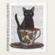 Black Cat in Teacup by FabFunky. Features a cat sitting in a beautiful floral teacup. | 191389D