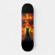 A vibrant Black Cat skateboard captured in watercolor style, with a striking background adding a touch of intensity and energy. The fusion of feline grace and firepower creates a unique and striking work, perfect for those who seek to express their style with an artistic and bold touch on wheels.