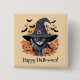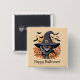 Black Cat in Witch Hat Halloween 15 Cm Square Badge