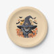 Black Cat in Witch Hat Halloween Paper Plate