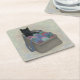 Black cat in yarn bag square paper coaster