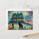 Black Cat, Jack O Lanterns, Spooky House Halloween Holiday Postcard