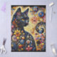 Black Cat Kitty Floral Whimsical Yellow Flowers