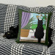 Black Cat Looking Out Window Cushion