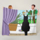 Black Cat Looking Out Window Fleece Blanket