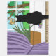 Black Cat sitting on window countertop looking out the window at the birds in the bird feeder. HD t.v. for cats