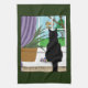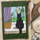 Black Cat Looking Out Window Tea Towel